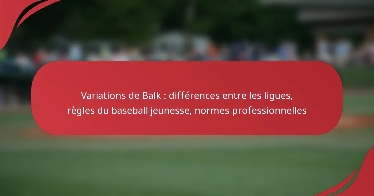 Un balk au baseball représente un mouvement illégal du lanceur qui peut tromper les coureurs, entraînant souvent leur avancée. Dans la Major League Baseball, les balks peuvent avoir des implications significatives pendant les matchs, menant à des incidents mémorables qui alimentent les discussions parmi les fans et les joueurs. En revanche, les ligues de baseball pour jeunes tendent à simplifier les règles de balk pour mieux répondre aux besoins de développement des jeunes joueurs, en mettant l’accent sur les compétences fondamentales de lancer.